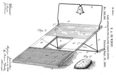 In 1883, Hayliger Adams De Windt, a native of New York state, was granted a U.S. patent for the game shown in the drawing at the right, which he called "parlor quoits". De Windt was a Harvard graduate and the great grandson of President John Adams' youngest daughter.